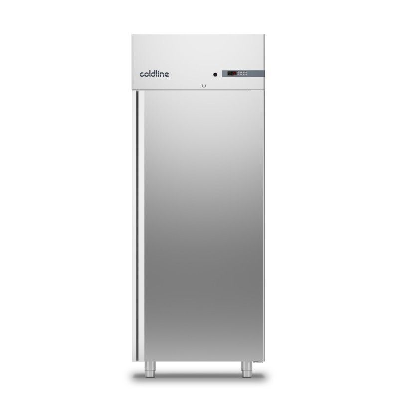 Cette armoire réfrigérée positive -2/+8°C, de COLDLINE, dispose d'une capacité de 650 litres. Elle est dotée d'une structure monocoque tout inox AISI304 18/10 avec des angles intérieurs arrondis, d'une porte avec fermeture à clef d'origine, d'une large poignée ergonomique intégrée sur toute la hauteur en acier inox AISI304. Cette armoire réfrigérée positive professionnelle à réfrigération semi-ventilée est équipée d'une porte réversible à fermeture automatique, avec blocage de l’ouverture à 105° et joints magnétiques facilement remplaçables, d'un éclairage intérieur, d'un évaporateur traité anti corrosion, d'un thermostat électronique (alarme température mini / maxi, alarme ouverture de porte, ...)