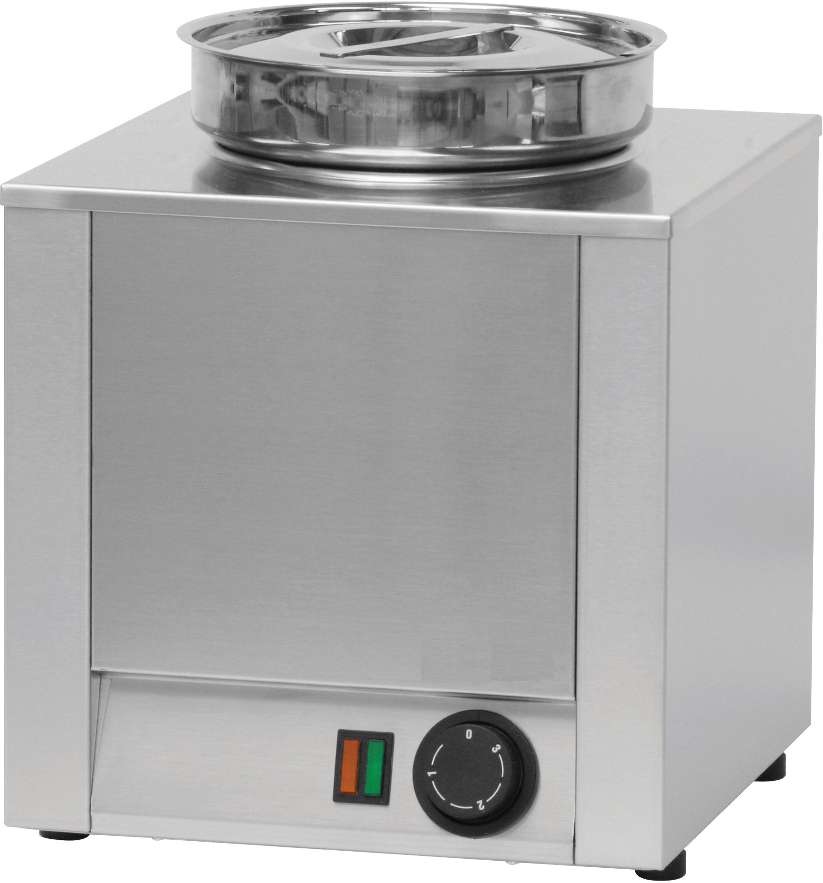 • Acier Inoxydable • Capacité cuve : 4,5 litres • Cuve et couvercle inox inclus • Chauffe à sec • Thermostat de température réglable de 30°C à 90°C • Puissance : 200 W / 230 V • Dimensions : L 300 x P 300 x H 350 mm • Poids : 6 Kg
