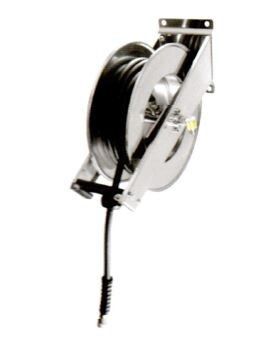 Enrouleur 15 mètres Carter inox ouvert Raccord rapide Poignée néo-gastro HP Alimentation EC / EF Débit 13 Litres Min Pression 5 bars