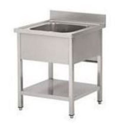Plonge sur pieds 700x700 Cuve 500x500x300mm 1 Bac Sans égouttoir Etagère basse
