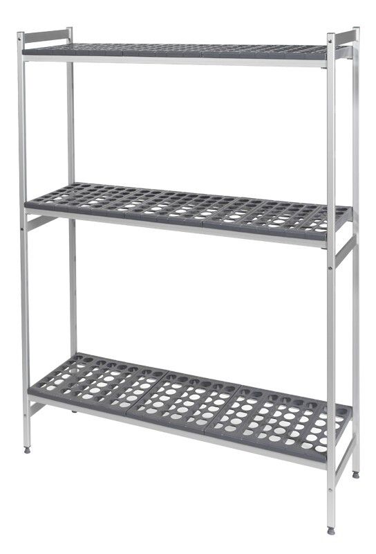 Avec clayettes Polymère amovibles (lavables en machine). Structure Duralinox anodisée 15 microns. Résistant à une température de - 40°C. Montage rapide et sans outil. Réglage des niveaux à la hauteur désirée au pas de 150 mm. Vérins composite et visserie inox. Agréé NF « Hygiène Alimentaire » et NSF « Food Equipment ». Charge maximum : 90 Kg uniformément réparti par niveau, 450 Kg entre 2 échelles et 360 kg pour chaque linéaire d’une configuration comprenant un ou plusieurs retours d’angles. Fabriqué en France