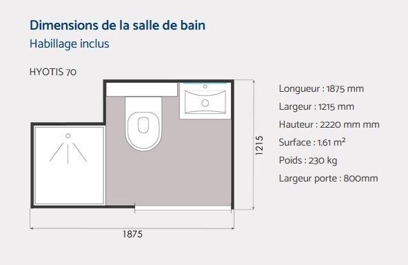- Attente EU/EV DN100 pour le WC et DN40 pour la vasque et la douche (avec vannes d'arrêt)