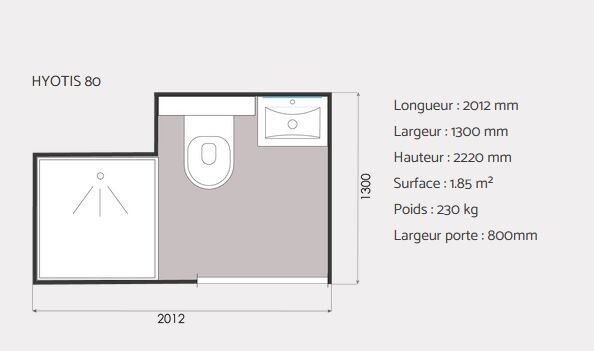 - Attente EU/EV DN100 pour le WC et DN40 pour la vasque et la douche (avec vannes d'arrêt)