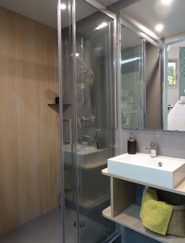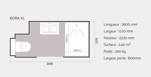 - Attente EU/EV DN100 pour le WC et DN40 pour la vasque et la douche (avec vannes d'arrêt)
