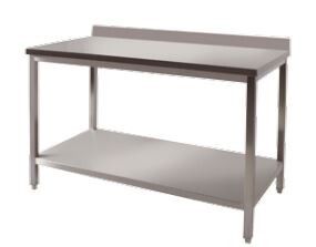 Table inox Eco Adossée Dosseret Etagère 4 pieds 2000x700mm