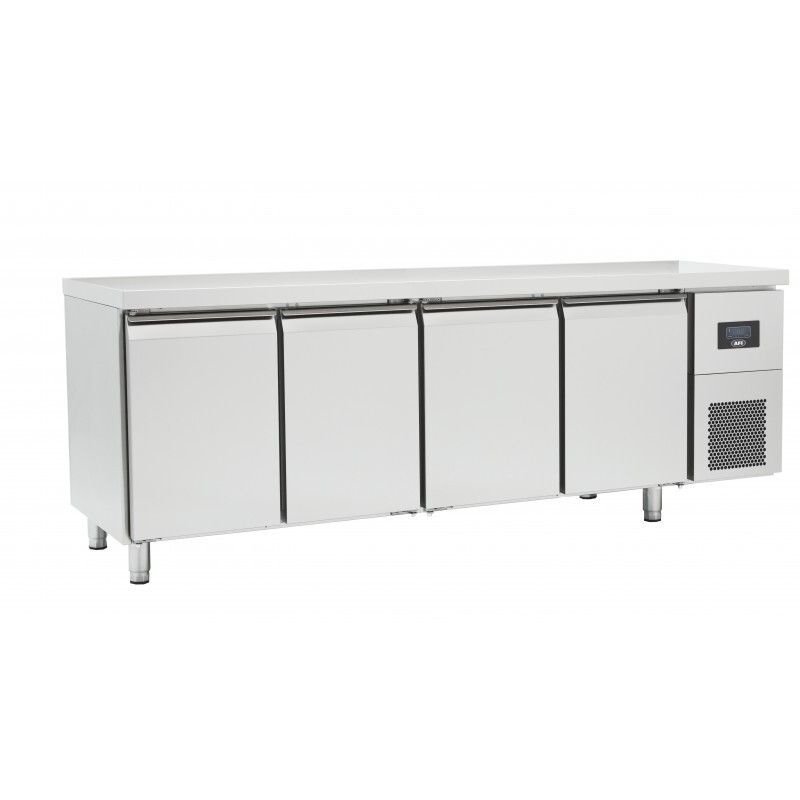 Table réfrigérée Négative Avec dosseret 625L 4 portes pleines Dessus inox