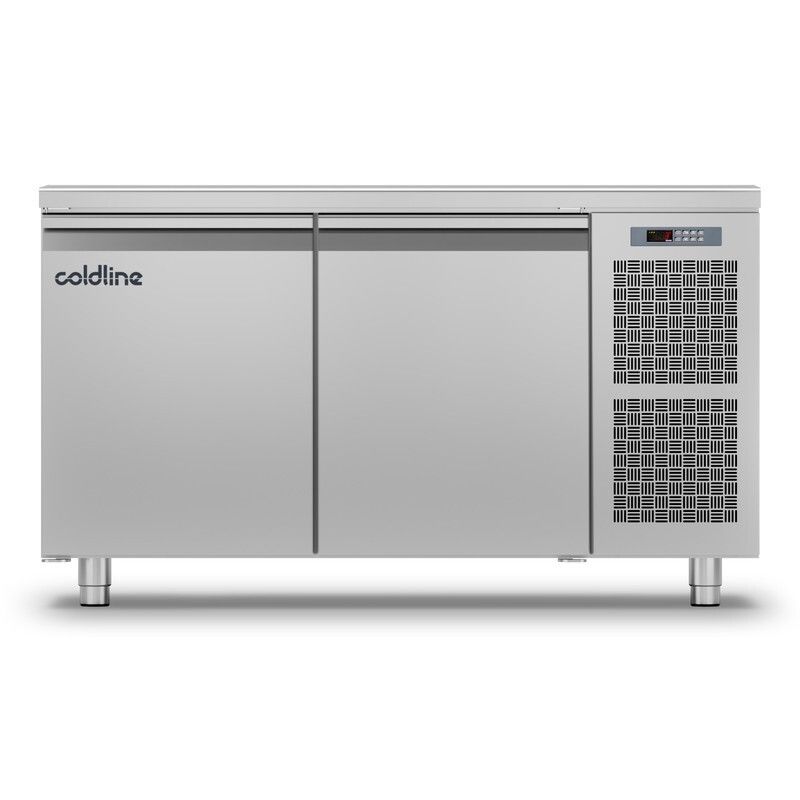 Cette table réfrigérée négative -15°C -20°C de COLDLINE en construction monocoque tout inox 18/10 arrière et dessous compris dispose d'un volume de 260 litres, d'un Groupe logé à gauche ou à droite, d'angles internes arrondis, d'un groupe tropicalisé ambiance +43°C, d'un tableau de commandes à gauche ou à droite, d'un évaporateur ventilé, d'un plan de travail renforcé épaisseur 40 mm avec bords arrondis, de pieds réglables en hauteur, de 2 portes avec maintien en position ouverte à 105°, de joints de portes magnétiques facilement démontables, d'un évaporateur traité anti-corrosion, du dégivrage automatique par gaz chaud et réévaporation automatique des condensats, d'un thermostat électronique et d'un affichage digital. Isolation 60 mm sans CFC. Alimentation : 230 V. Gaz réfrigérant : R404a.
