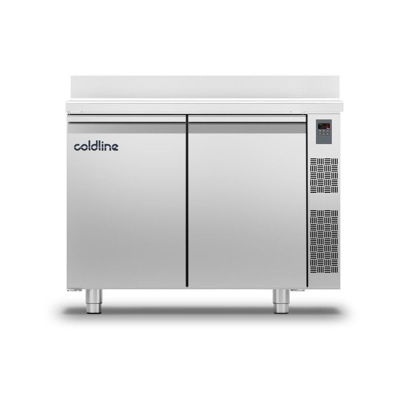 Cette table réfrigérée positive -15°C -20°C de COLDLINE en construction monocoque tout inox 18/10 arrière et dessous compris dispose d'un volume de 260 litres, d'angles internes arrondis, d'un tableau de commandes à gauche ou à droite, d'un évaporateur ventilé, d'un plan de travail renforcé épaisseur 40 mm avec bords arrondis, de pieds réglables en hauteur, de 2 portes avec maintien en position ouverte à 105°, de joints de portes magnétiques facilement démontables, d'un évaporateur traité anti-corrosion, du dégivrage automatique par gaz chaud et réévaporation automatique des condensats, d'un thermostat électronique et d'un affichage digital. Isolation 60 mm sans CFC. Alimentation : 230 V. Gaz réfrigérant : R404a.