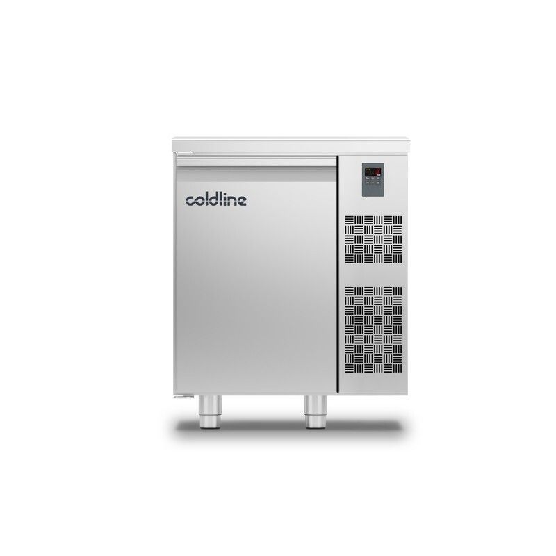 Cette table réfrigérée négative -15°C -20°C de COLDLINE en construction monocoque tout inox 18/10 arrière et dessous compris dispose d'un volume de 145 litres, d'angles internes arrondis, d'un tableau de commandes à gauche ou à droite, d'un évaporateur ventilé, d'un plan de travail renforcé épaisseur 40 mm avec bords arrondis, de pieds réglables en hauteur, d'une porte avec maintien en position ouverte à 105°, de joints de portes magnétiques facilement démontables, d'un évaporateur traité anti-corrosion, du dégivrage automatique par gaz chaud et réévaporation automatique des condensats, d'un thermostat électronique et d'un affichage digital. Isolation 60 mm sans CFC. Alimentation : 230 V. Gaz réfrigérant : R404a.