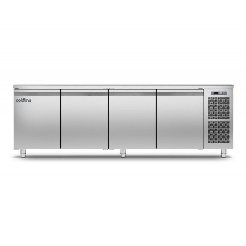Cette table réfrigérée positive -2°C +8°C de COLDLINE en construction monocoque tout inox 18/10 arrière et dessous compris dispose d'un volume de 560 litres, d'un Groupe logé à gauche ou à droite, d'angles internes arrondis, d'un groupe tropicalisé ambiance +43°C, d'un tableau de commandes à gauche ou à droite, d'un évaporateur ventilé, d'un plan de travail renforcé épaisseur 40 mm avec bords arrondis, de pieds réglables en hauteur, d'une porte avec maintien en position ouverte à 105°, de joints de portes magnétiques facilement démontables, d'un évaporateur traité anti-corrosion, du dégivrage automatique par gaz chaud et réévaporation automatique des condensats, d'un thermostat électronique et d'un affichage digital. Isolation 60 mm sans CFC. Alimentation : 230 V. Gaz réfrigérant : R404a.