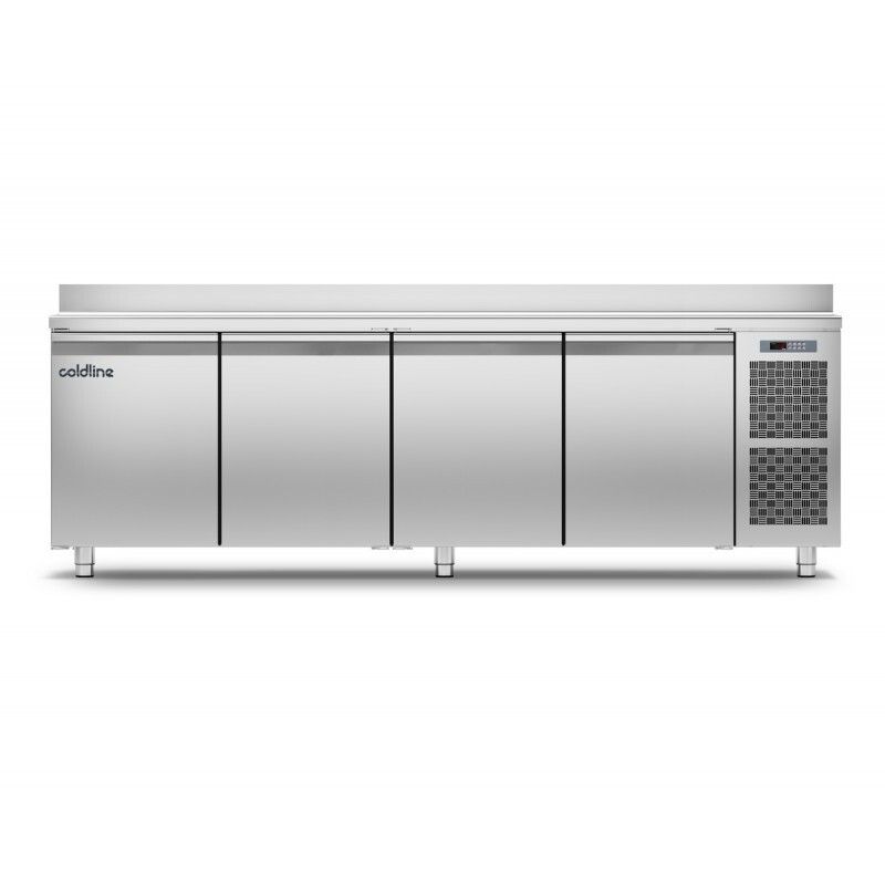 Cette table réfrigérée positive -2°C +8°C de COLDLINE en construction monocoque tout inox 18/10 arrière et dessous compris dispose d'un volume de 560 litres, d'un Groupe logé à gauche ou à droite, d'angles internes arrondis, d'un groupe tropicalisé ambiance +43°C, d'un tableau de commandes à gauche ou à droite, d'un évaporateur ventilé, d'un plan de travail renforcé épaisseur 40 mm avec bords arrondis, de pieds réglables en hauteur, d'une porte avec maintien en position ouverte à 105°, de joints de portes magnétiques facilement démontables, d'un évaporateur traité anti-corrosion, du dégivrage automatique par gaz chaud et réévaporation automatique des condensats, d'un thermostat électronique et d'un affichage digital. Isolation 60 mm sans CFC. Alimentation : 230 V. Gaz réfrigérant : R404a.
