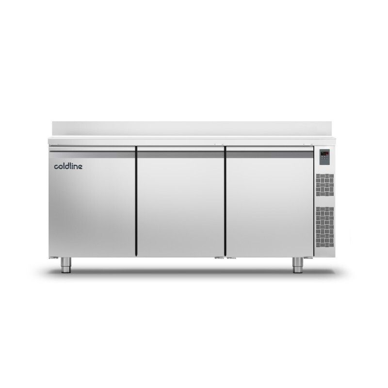 Cette table réfrigérée positive -2°C +8°C de COLDLINE en construction monocoque tout inox 18/10 arrière et dessous compris dispose d'un volume de 415 litres, d'angles internes arrondis, d'un tableau de commandes à gauche ou à droite, d'un évaporateur ventilé, d'un plan de travail renforcé épaisseur 40 mm avec bords arrondis, de pieds réglables en hauteur, d'une porte avec maintien en position ouverte à 105°, de joints de portes magnétiques facilement démontables, d'un évaporateur traité anti-corrosion, du dégivrage automatique par gaz chaud et réévaporation automatique des condensats, d'un thermostat électronique et d'un affichage digital. Isolation 60 mm sans CFC. Alimentation : 230 V. Gaz réfrigérant : R404a.