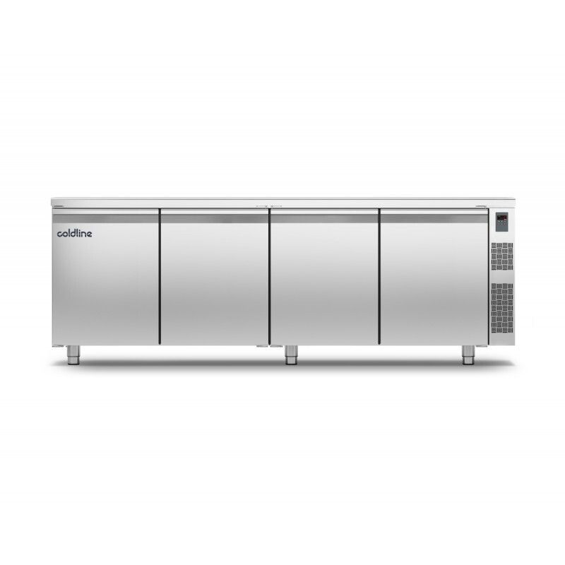 Cette table réfrigérée positive -2°C +8°C de COLDLINE en construction monocoque tout inox 18/10 arrière et dessous compris dispose d'un volume de 560 litres, d'angles internes arrondis, d'un tableau de commandes à gauche ou à droite, d'un évaporateur ventilé, d'un plan de travail renforcé épaisseur 40 mm avec bords arrondis, de pieds réglables en hauteur, d'une porte avec maintien en position ouverte à 105°, de joints de portes magnétiques facilement démontables, d'un évaporateur traité anti-corrosion, du dégivrage automatique par gaz chaud et réévaporation automatique des condensats, d'un thermostat électronique et d'un affichage digital. Isolation 60 mm sans CFC. Alimentation : 230 V. Gaz réfrigérant : R404a.