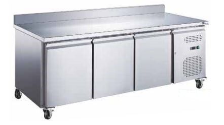 Table réfrigérée Positive Snaking Avec dosseret 339L 3 portes pleines Dessus inox