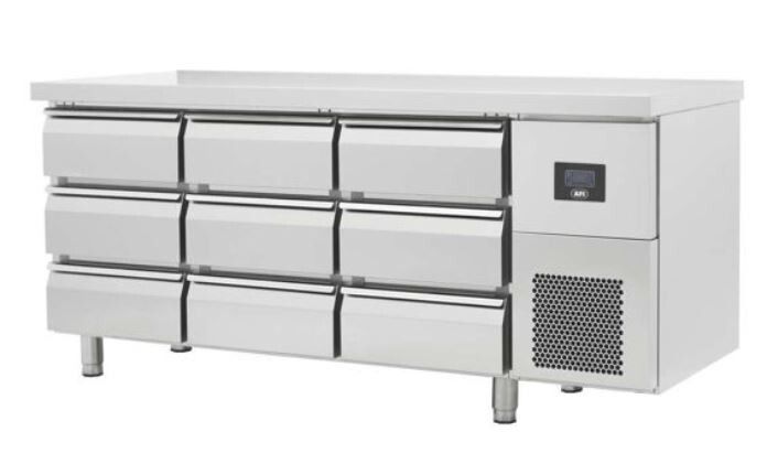 Table réfrigérée Négative Sans dosseret 457L 9 tiroirs Dessus inox