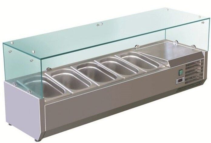 Présentoir réfrigéré pour 6 Bacs GN 1/4 Vitrage droit L1400mm Profondeur 335mm
