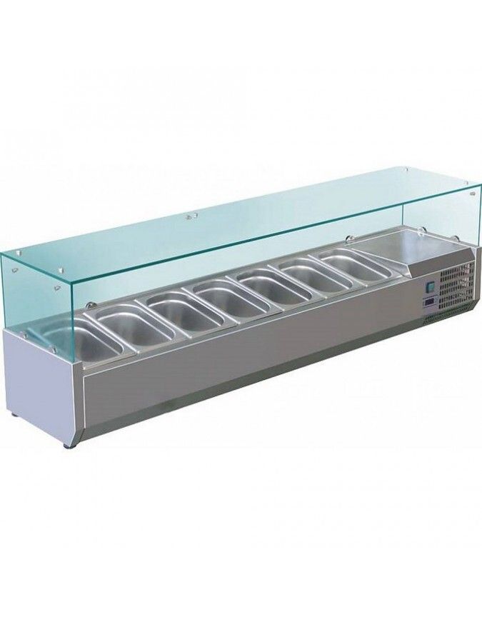 Présentoir réfrigéré pour 7 Bacs GN 1/4 Vitrage droit L1600mm Profondeur 395mm