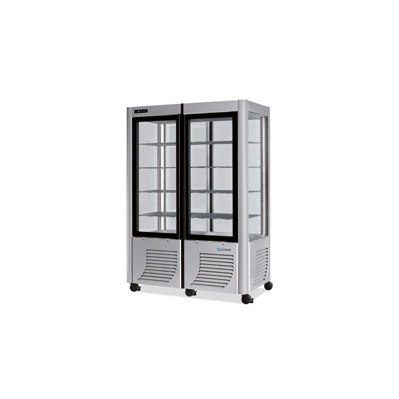 Vitrine réfrigérée Positive 4 faces Vitrées 800L 1/2 fixe + 1/2 tournante 2 Portes